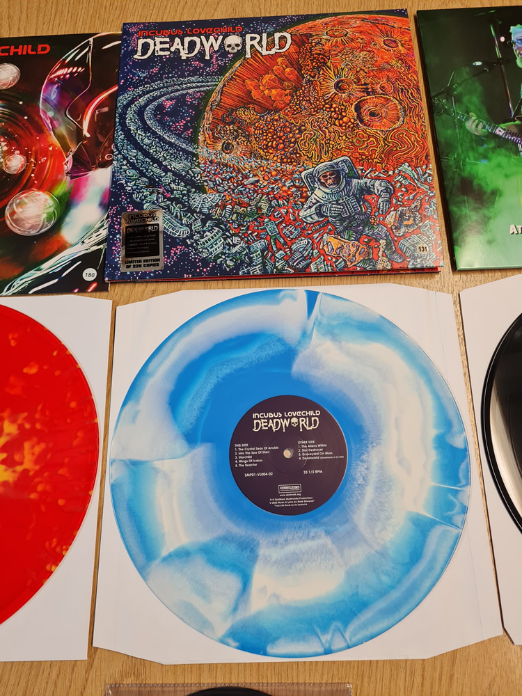 - Opaque Blue & White swirl DEADWORLD Vinyl (With double sided poster, Lyric Book, exclusive 50mm sticker & exclusive 25mm pin badge).